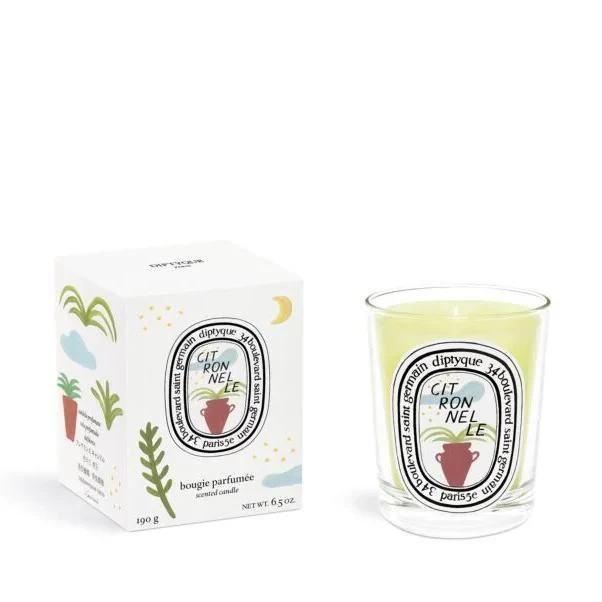 CITRONNELLE | Developed Celebrating lemongrass – another characteristic summer scent, known and valued for its tangy coolness and its mosquito-repellent properties decorated with illustrations courtesy of Erik Winkowski enhanced with floral and green touches, this candle will be the perfect accompaniment to summer evenings spent al fresco after night has fallen.