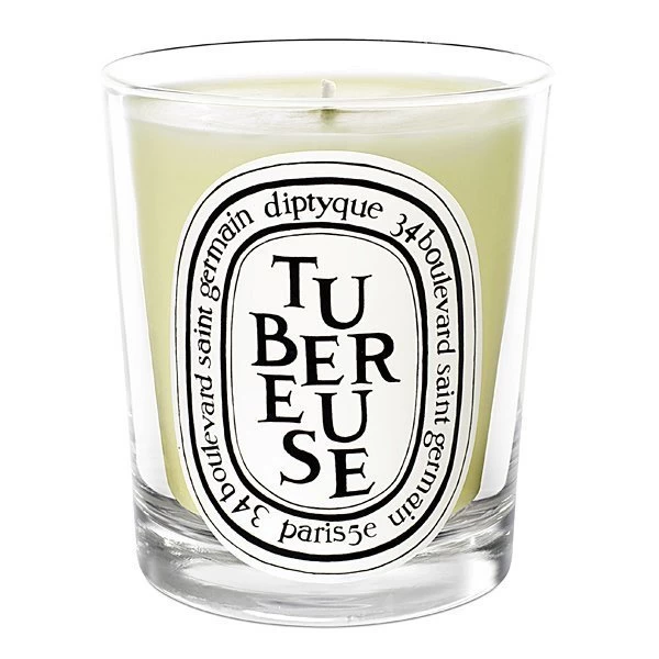 Diptyque Tubereuse (Tuberose) Candle: the scent of tuberose in the wide fields of Southern India, where these fragrant white flowers are grown. From the top of their long, slender stems, they exhale a heady yet fresh and green scent, delicately nuanced with fruity, milky notes.